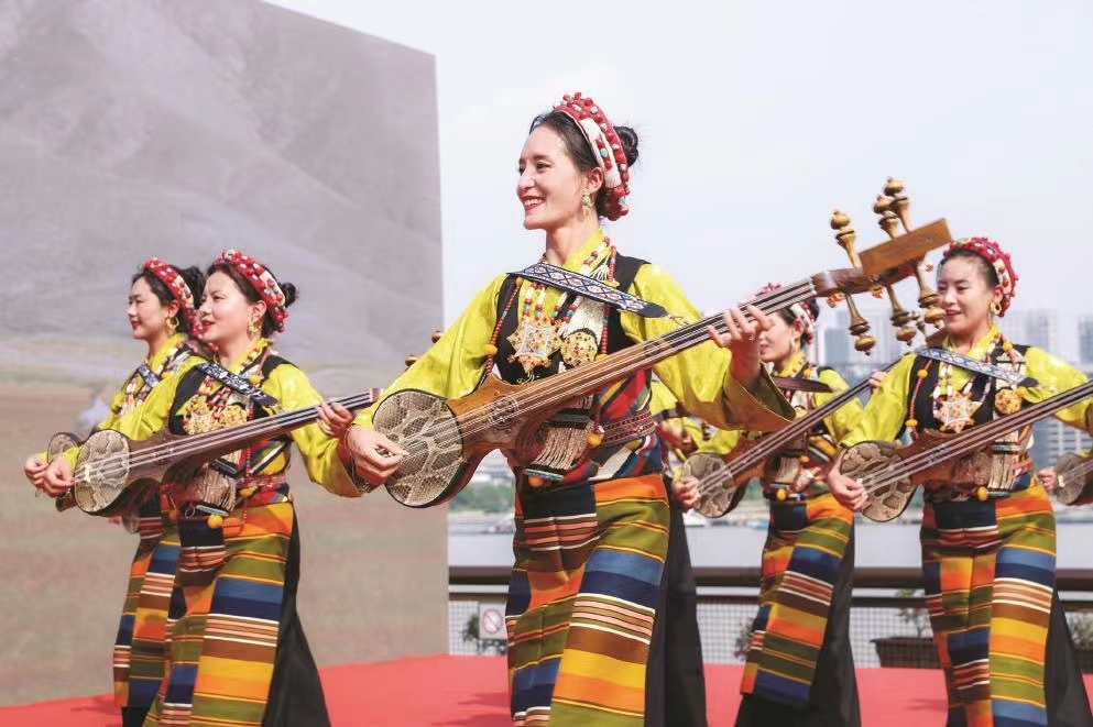 5日,由上海市援藏干部人才聯(lián)絡組拉孜小組、西藏日喀則市拉孜縣文化和旅游局主辦的“遇見|雅江情濱江意·滬藏文化交流”演出,走進上海楊浦文化新地標“YOUNG劇場”,悠揚的扎念琴聲、時快時慢的“踢踏”舞聲、傳統(tǒng)藏族曲調和現(xiàn)場觀眾的歡笑聲、鼓掌聲,為初夏的繽紛申城再添一抹亮色。