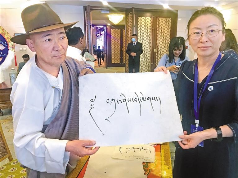 論壇會(huì)上,鋪開獨(dú)特的藏紙,手持光潤的竹筆,48歲的藏文書法家扎西頓珠鄭重寫下“扎西德勒”四個(gè)字,贈(zèng)予前來參會(huì)的中外嘉賓。作為國家級(jí)非物質(zhì)文化遺產(chǎn)代表性項(xiàng)目藏文書法(尼赤)的代表性傳承人,扎西頓珠希望讓更多人感受并了解西藏傳統(tǒng)書法之美?!斑@次論壇期間,我先后向中外嘉賓送上了300多幅書法作品,我們藏族傳統(tǒng)文化能被全世界看見并受到喜愛,推動(dòng)各民族交往交流交融,感到非常開心和自豪?!眲倧谋本┗貋聿痪?,閑不住的扎西頓珠又在準(zhǔn)備參加藏博會(huì)的書法作品,傳播藏文書法文化。