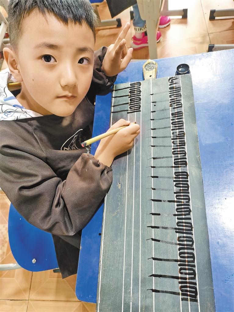 一位小朋友在自治區(qū)圖書館里通過“墻星”學(xué)習(xí)尼赤書法。