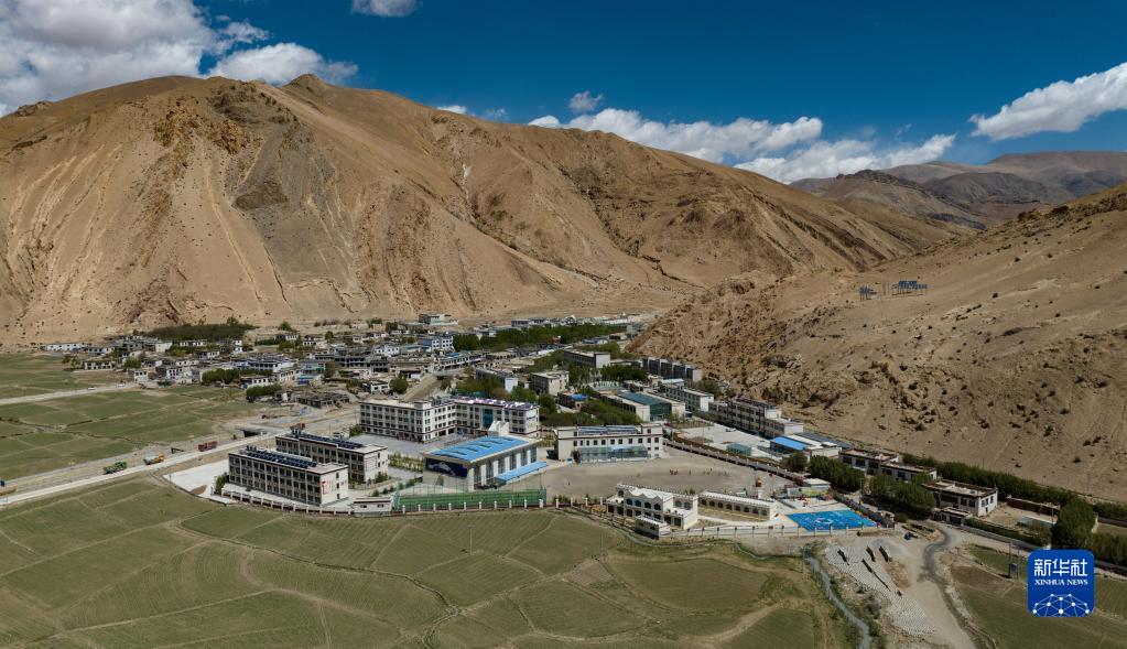 珠峰腳下的扎西宗鄉(xiāng)完全小學(xué),這里距離珠峰只有40多公里(6月5日攝,無(wú)人機(jī)照片)。新華社記者 晉美多吉 攝