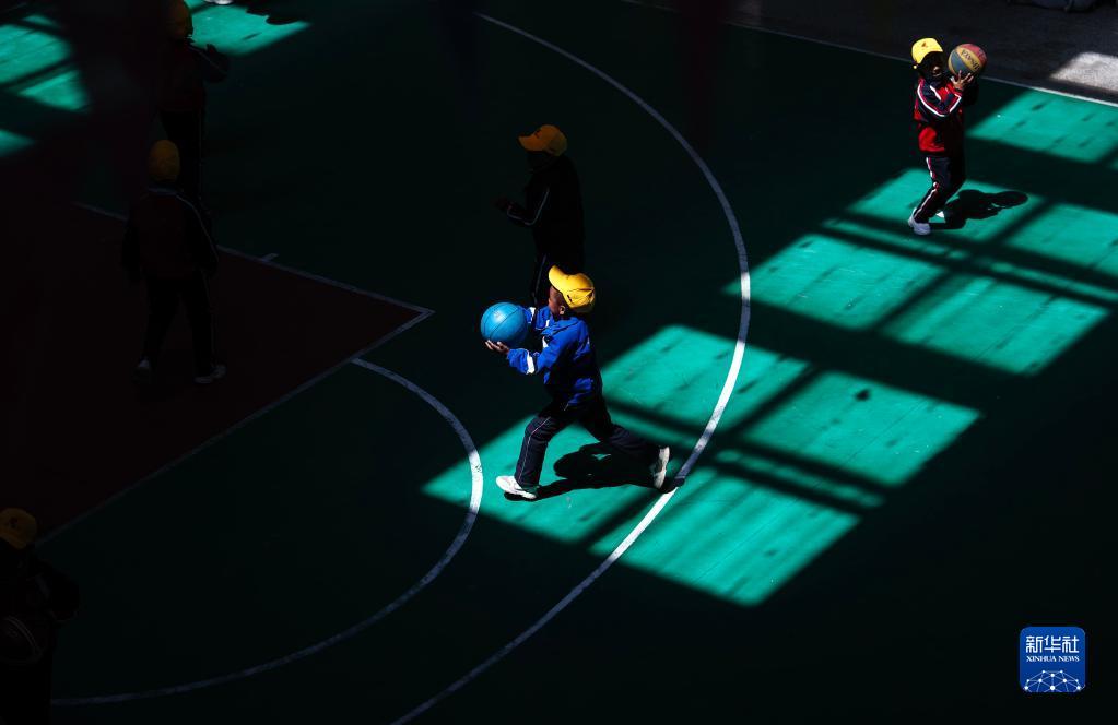 6月5日,扎西宗鄉(xiāng)完全小學(xué)學(xué)生在籃球課上投籃。新華社記者 邵澤東 攝