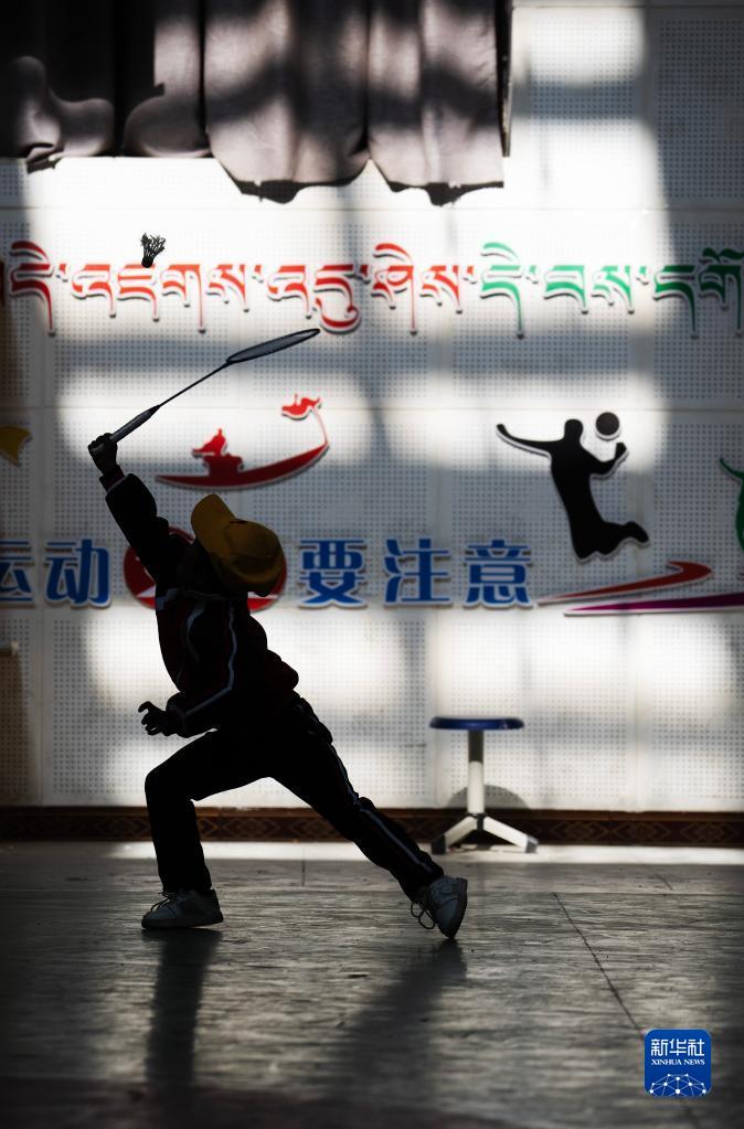 6月5日,扎西宗鄉(xiāng)完全小學(xué)的學(xué)生在室內(nèi)體育館上體育課。新華社記者 費(fèi)茂華 攝