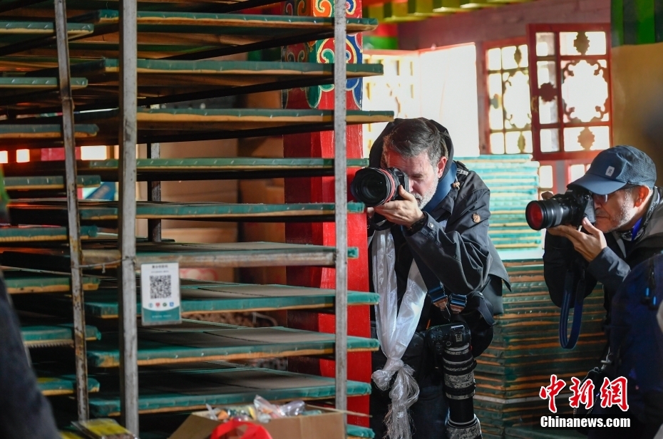6月15日,西藏拉薩,記者們在尼木縣非遺工坊(藏紙制作廠)采訪拍攝。在第五屆中國西藏旅游文化國際博覽會召開之際,國務(wù)院新聞辦組織中外媒體記者赴西藏采訪,路透社、共同社、西班牙埃菲社、意大利安莎社、新加坡《聯(lián)合早報(bào)》和中央廣電總臺、中國日報(bào)等15家媒體的20名記者參加。6月15日,采訪團(tuán)一行前往拉薩市尼木縣參訪體驗(yàn)西藏傳統(tǒng)藏香、藏紙文化。