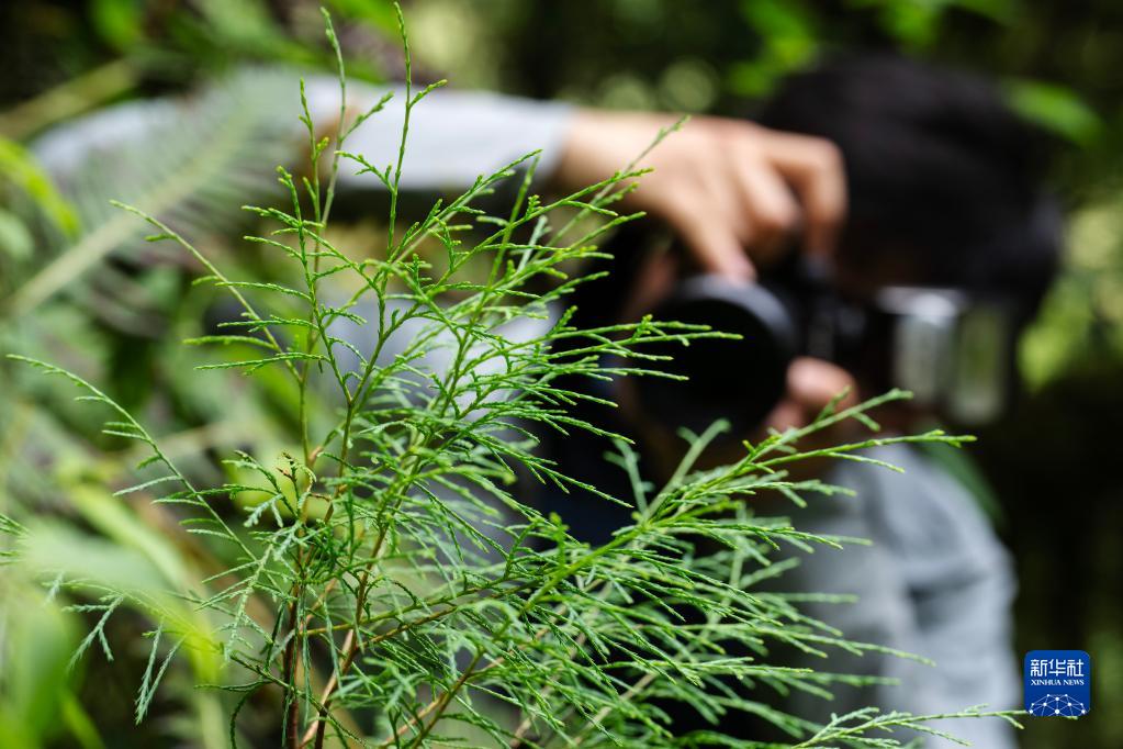 6月15日,中科院植物所博士生王孜在亞洲第一高樹(shù)旁拍攝一株西藏柏木的小樹(shù)苗。新華社記者 費(fèi)茂華 攝