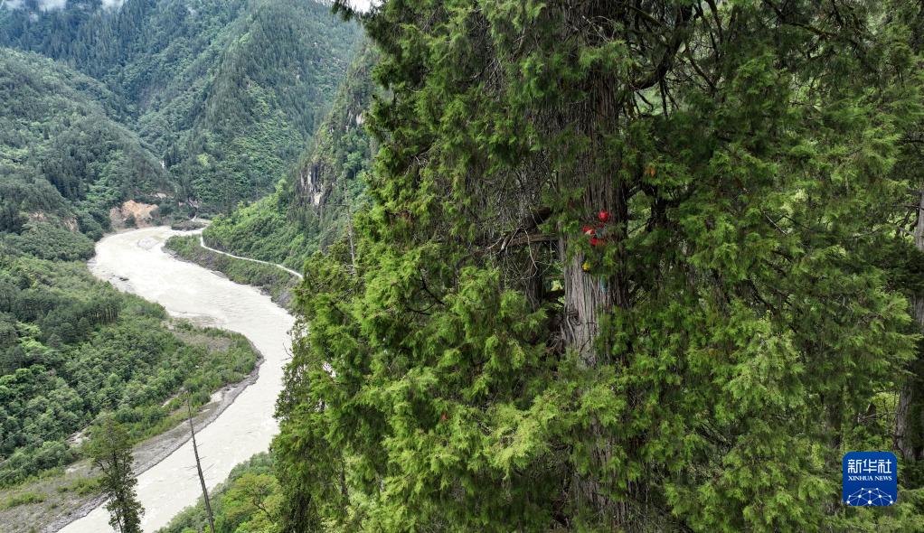 6月15日從空中俯瞰亞洲第一高樹(shù)(無(wú)人機(jī)照片)。新華社記者 晉美多吉 攝