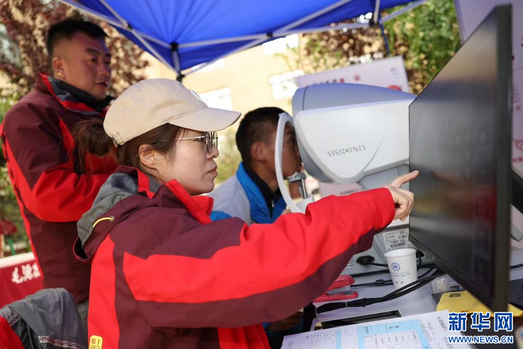 ??在西藏自治區(qū)那曲市色尼區(qū)第二中學(xué)(杭嘉中學(xué)),志愿者用綜合驗(yàn)光儀為學(xué)生驗(yàn)光(6月22日攝)。新華社發(fā)(趙穎碩 攝)