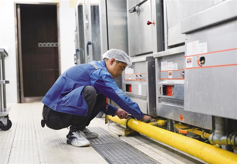 在香格里拉酒店,拉薩暖心公司工作人員對(duì)酒店的鍋爐房、廚房等地開展了燃?xì)獍踩[患排查。拉薩暖心公司客戶服務(wù)部抄表中心主任張雁龍手拿檢測儀器,對(duì)鍋爐房、廚房內(nèi)的燃?xì)夤艿浪薪涌?、燃?xì)庠罹?、軟管、燃?xì)鈭?bào)警器、安全閥等全部進(jìn)行了檢查,并對(duì)每一項(xiàng)檢查結(jié)果進(jìn)行了登記。