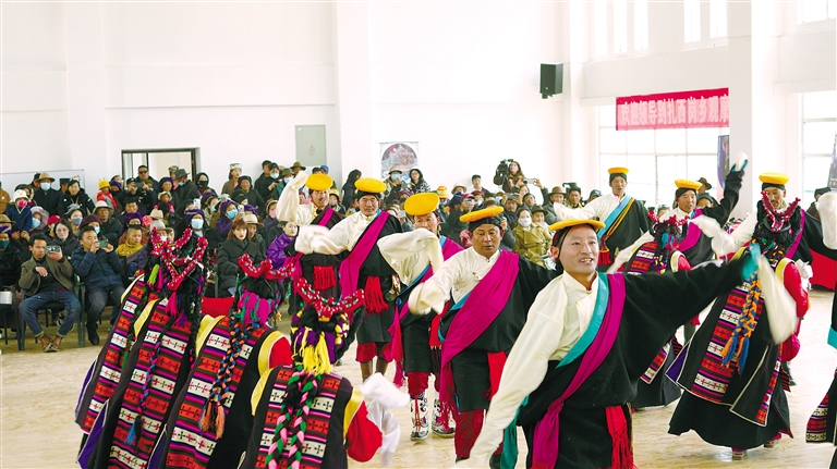 圖為甲瑪鄉(xiāng)“諧欽”藝術團表演“甲瑪諧欽”。記者 格桑倫珠 攝