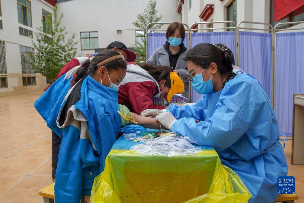 7月4日,“心佑工程”項(xiàng)目團(tuán)隊醫(yī)生給患兒抽血檢查。新華社記者 邵澤東 攝