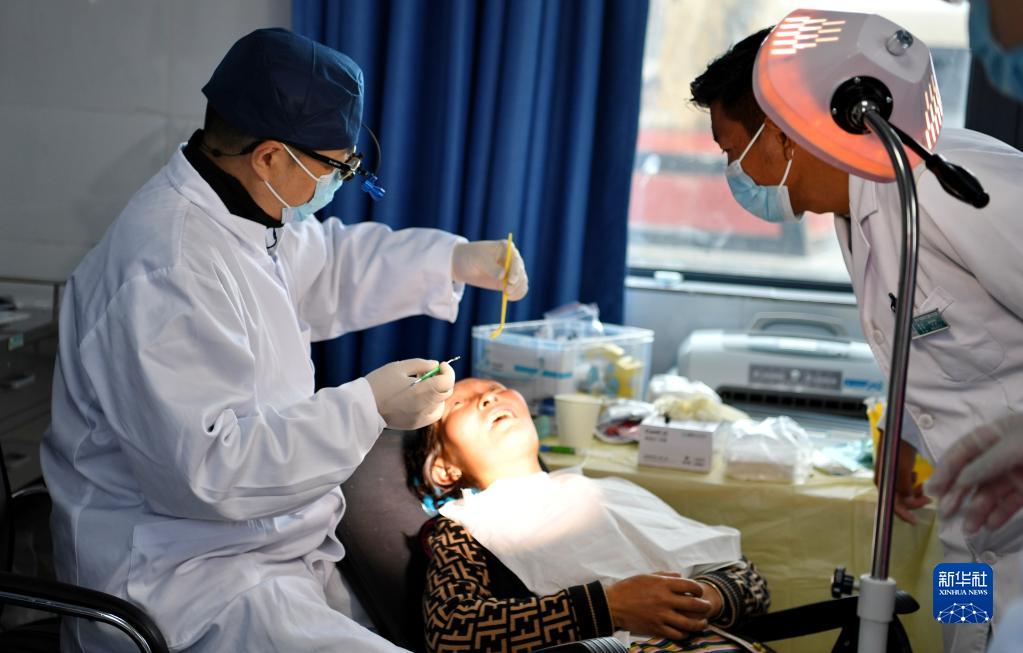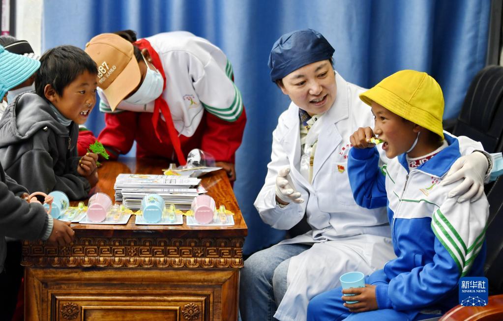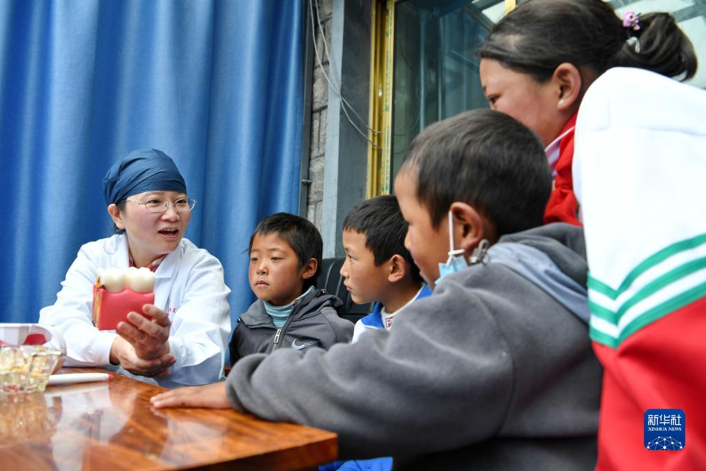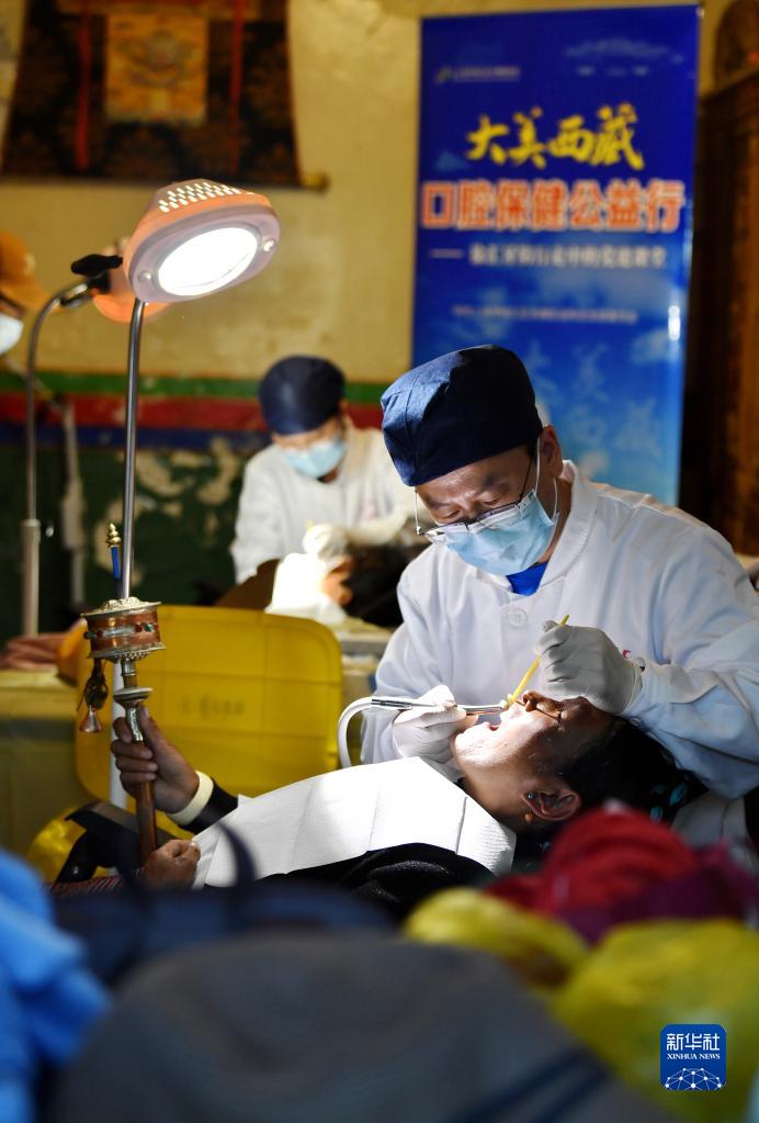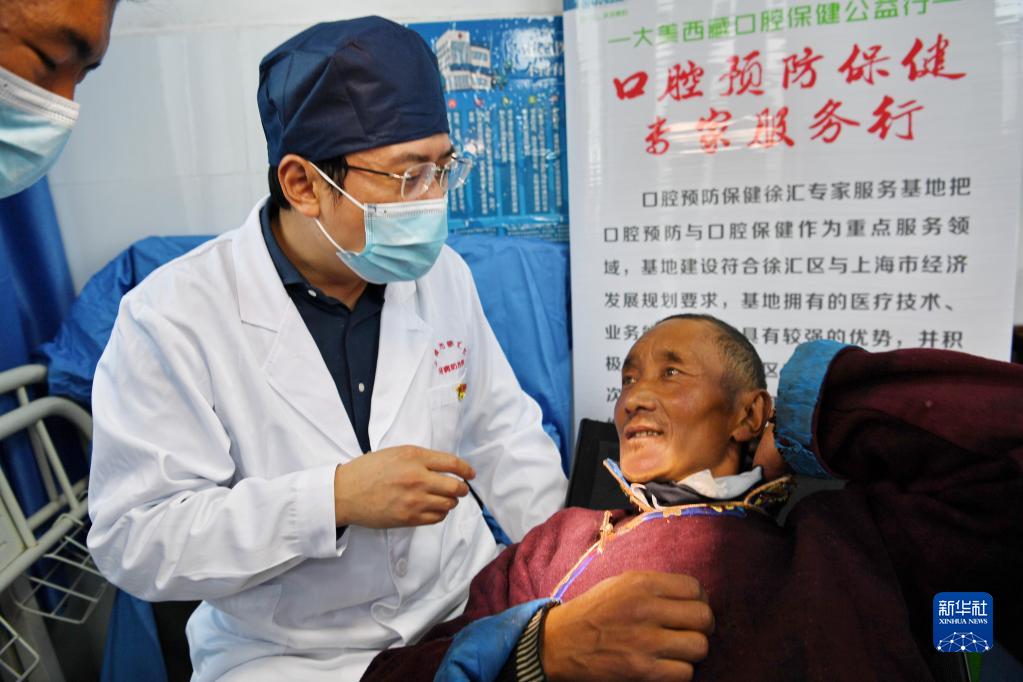 近日,上海市徐匯區(qū)牙病防治所的醫(yī)務(wù)工作者來到西藏浪卡子縣普瑪江塘鄉(xiāng),為當(dāng)?shù)鼐用衿占翱谇槐=≈R(shí)并進(jìn)行義診服務(wù)。普瑪江塘鄉(xiāng)海拔5373米,是我國海拔最高的鄉(xiāng)。