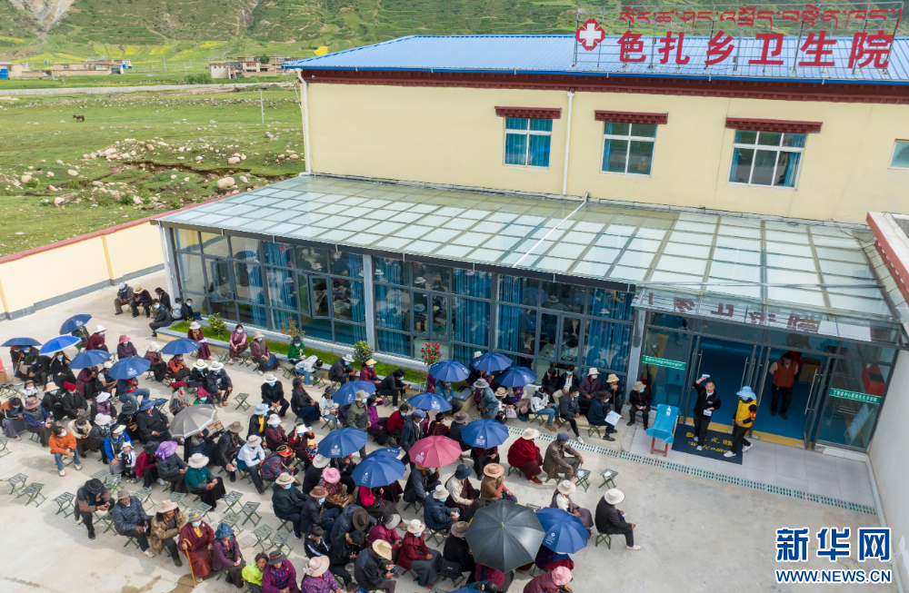 7月10日,群眾在西藏丁青縣色扎鄉(xiāng)衛(wèi)生院內(nèi)排隊(duì)等待北京醫(yī)療人員。新華網(wǎng) 旦增努布 攝
