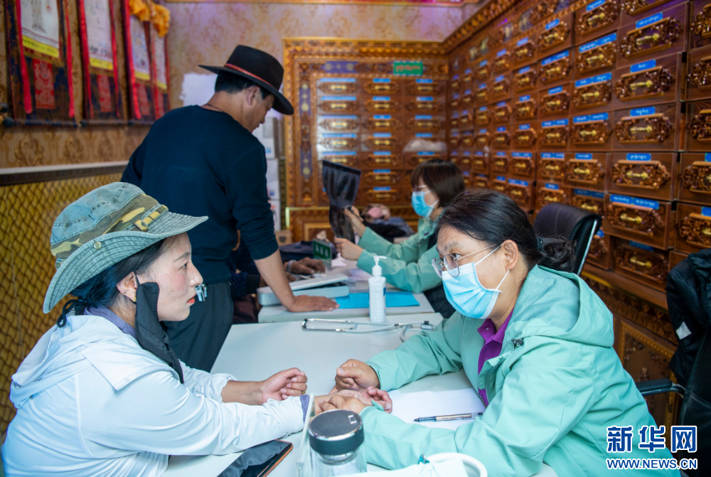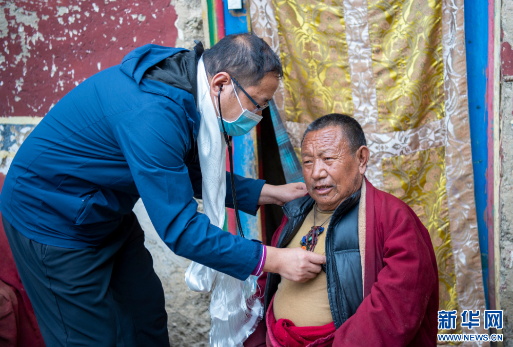 7月13日,來(lái)自北京安貞醫(yī)院的醫(yī)生在西藏丁青縣孜珠寺為僧人義診。新華網(wǎng) 旦增努布 攝