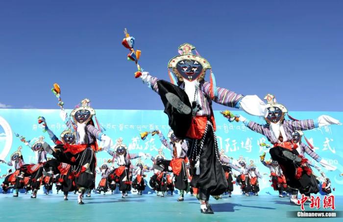 2015年,第二屆西藏旅游文化國(guó)際博覽會(huì)在拉薩開幕。圖為開幕式上的藏戲表演。李林 攝