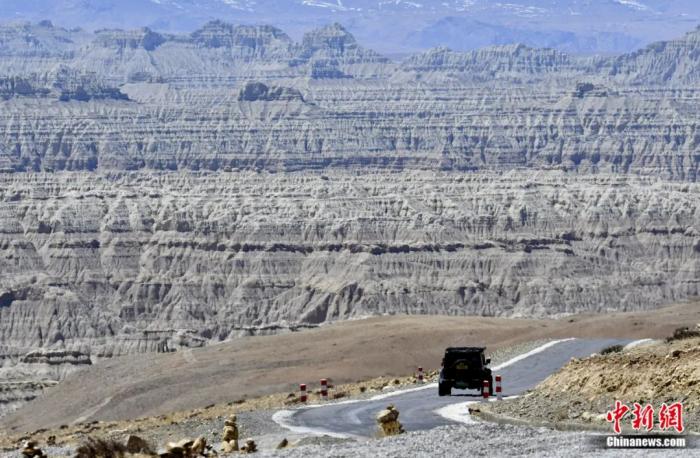 汽車駛向西藏阿里札達(dá)土林。札達(dá)土林位于西藏阿里地區(qū)札達(dá)縣境內(nèi),土林千溝萬(wàn)壑,形態(tài)奇絕,景色迷人。李林 攝