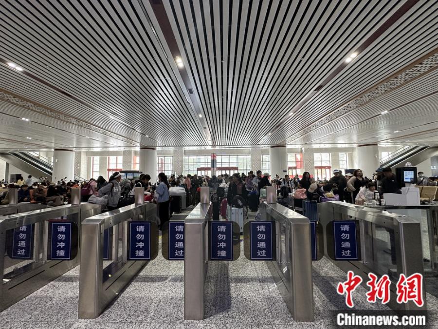 在林芝火車(chē)站,旅客正在等待前往拉薩的列車(chē)。錢(qián)姣姣 攝