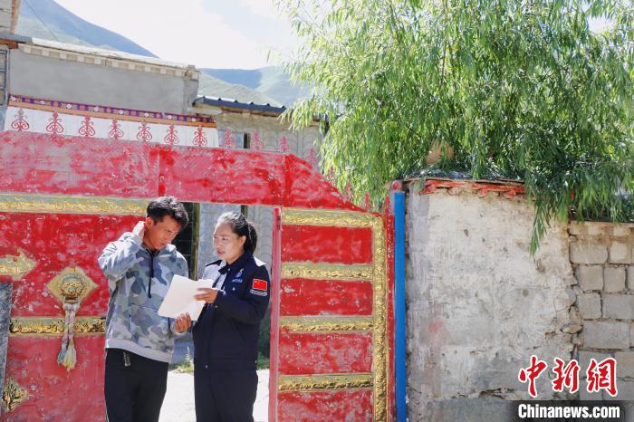 圖為索朗曲珍為鄰居解答戶籍辦理的相關政策?!?攝