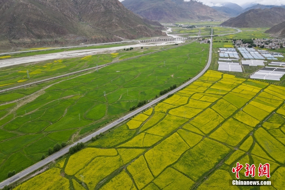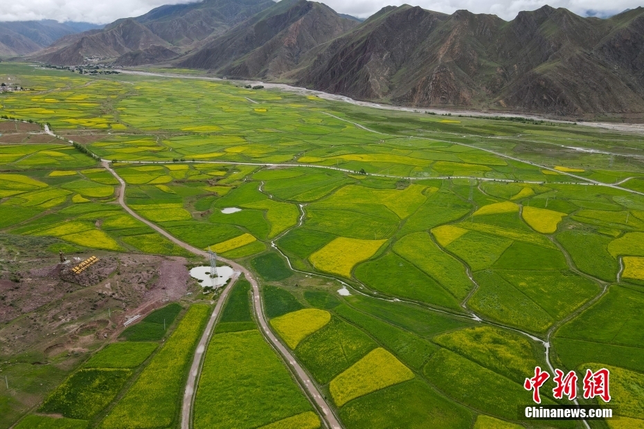 7月24日,航拍西藏堆龍曲沿岸的油菜花田與青稞地。堆龍曲是拉薩河支流,源頭位于念青唐古拉山脈西南,流經(jīng)羊八井、德慶鎮(zhèn),至堆龍德慶區(qū)注入拉薩河干流。近日,西藏堆龍曲兩岸油菜花盛放,呈現(xiàn)出一幅“高原不與四時(shí)同、七月才開二月花”的美麗景象。駕車經(jīng)過或漫步其間,高原油菜花散發(fā)出陣陣花香,像是“春天的味道”。