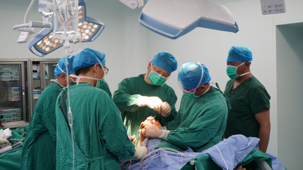 6月21日,邱波、譚楊、曹輝等專家為患者手術(shù)。