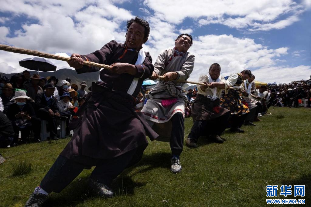 圖為達孜“望果節(jié)”拔河比賽現(xiàn)場(7月28日攝)。新華網(wǎng)發(fā) 李騰 攝
