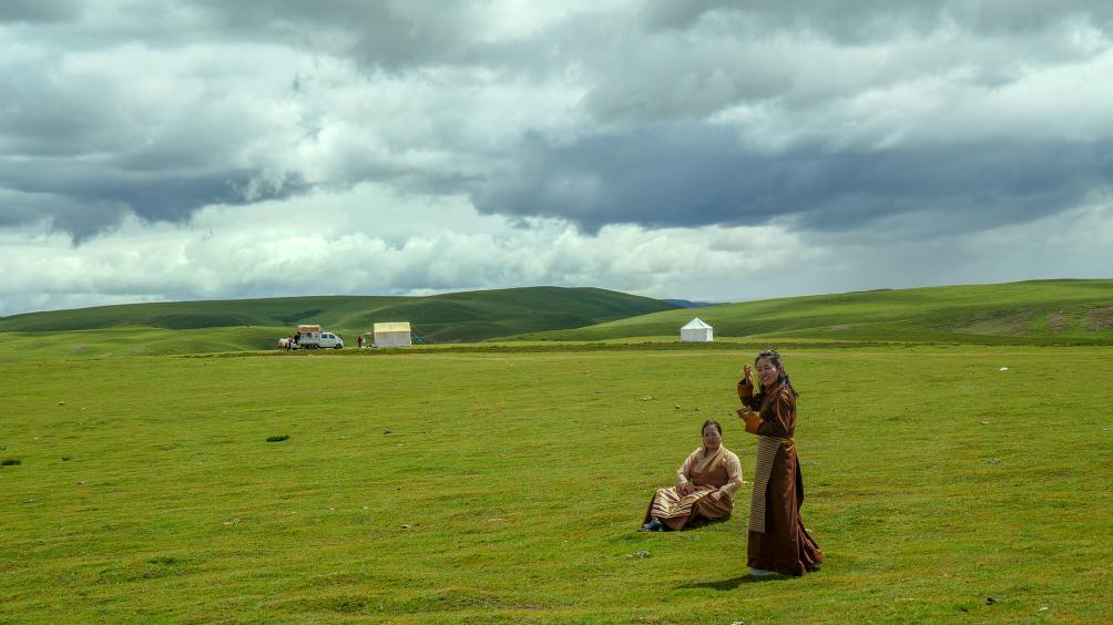 8月11日,游客在羌塘草原上賞景游樂。新華社記者 陳澤鵬 攝