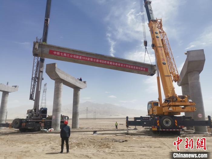 記者17日從中鐵七局集團(tuán)有限公司(以下簡(jiǎn)稱“中鐵七局”)獲悉,日前,由該公司承建的國(guó)道109宗格公路項(xiàng)目跨青藏鐵路橋首片預(yù)制箱梁順利完成架設(shè),標(biāo)志著該項(xiàng)目預(yù)制箱梁架設(shè)施工拉開序幕。