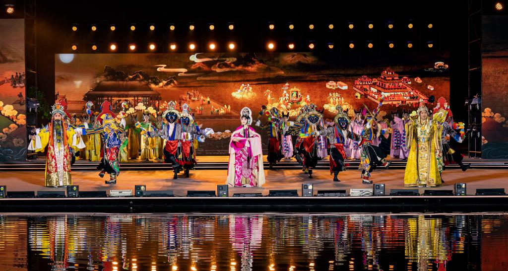 8月16日,在2023拉薩雪頓節(jié)開(kāi)幕式文藝演出上,京劇藏戲《文成公主》上演。新華社記者 丁增尼達(dá) 攝