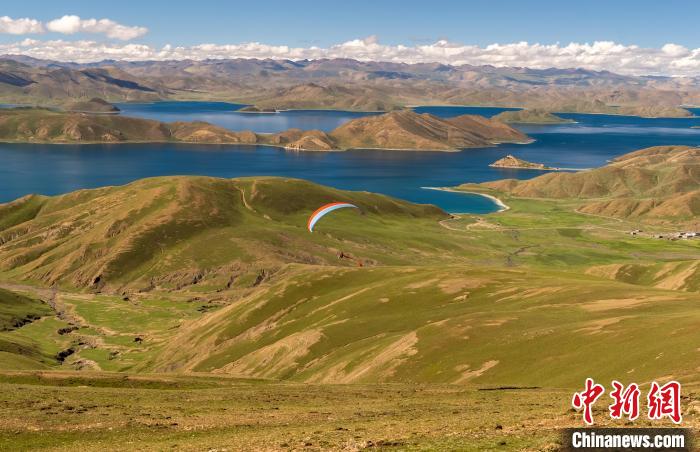 八月的羊卓雍措,湖水湛藍(lán)青碧,波光瀲滟,如一幅色彩明艷的油畫。在滑翔傘精彩的表演中,2023年環(huán)羊卓雍措自行車公開賽18日在西藏山南市羊卓雍措湖畔鳴槍開賽。