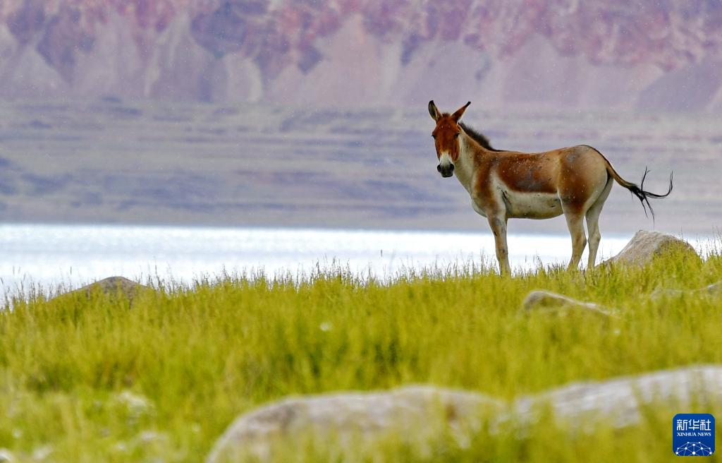 扎日南木錯(cuò)湖畔的藏野驢(8月19日攝)。新華社記者 張汝鋒 攝