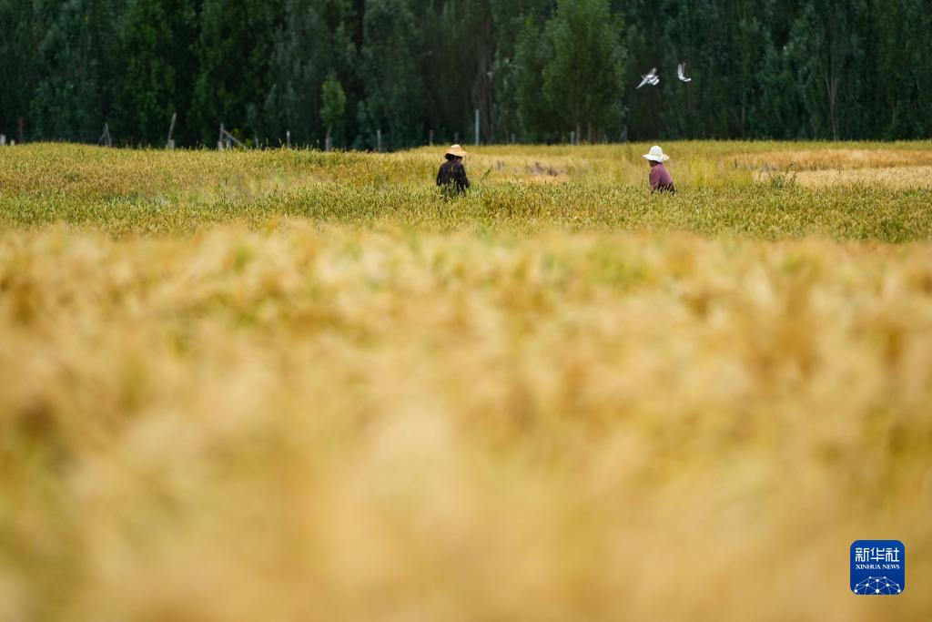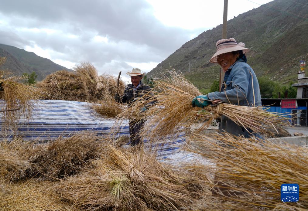 8月24日,乃東區(qū)的農(nóng)民在田間收割。新華社記者 姜帆 攝