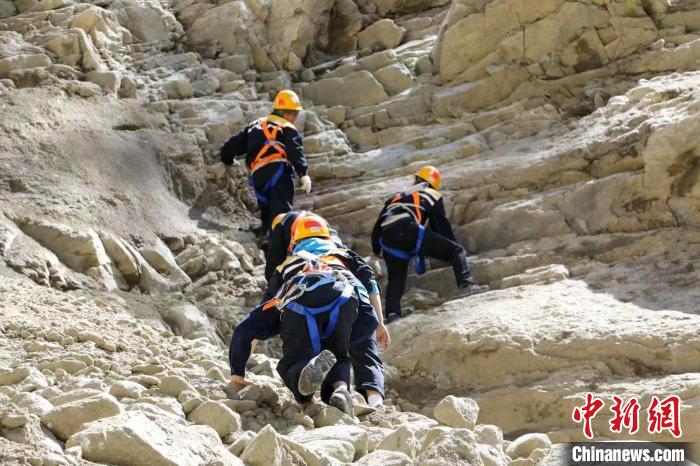 近日,在西藏山南雅魯藏布江畔的拉林鐵路安拉隧道口山崖上,中國鐵路青藏集團有限公司拉薩基礎設施段加查橋隧工區(qū)的職工們對山體開展巡視,他們一邊攀爬,一邊小心用手錘敲擊巖石,對有空虛、容易滑落的石塊用自噴漆進行標記。遠遠看去,一群人猶如壁虎穿梭于懸崖峭壁之上。