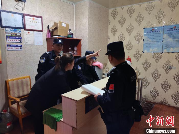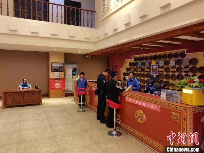 圖為民警對轄區(qū)酒店、旅館進行安全檢查。林海龍 攝