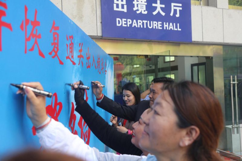 “心情很激動,現(xiàn)在可以從樟木口岸通關(guān)了,往來方便多了!”樟木鎮(zhèn)群眾索朗曲珍激動地說。同時,她在國門簽名墻上寫下了“祝祖國繁榮昌盛”的祝福。