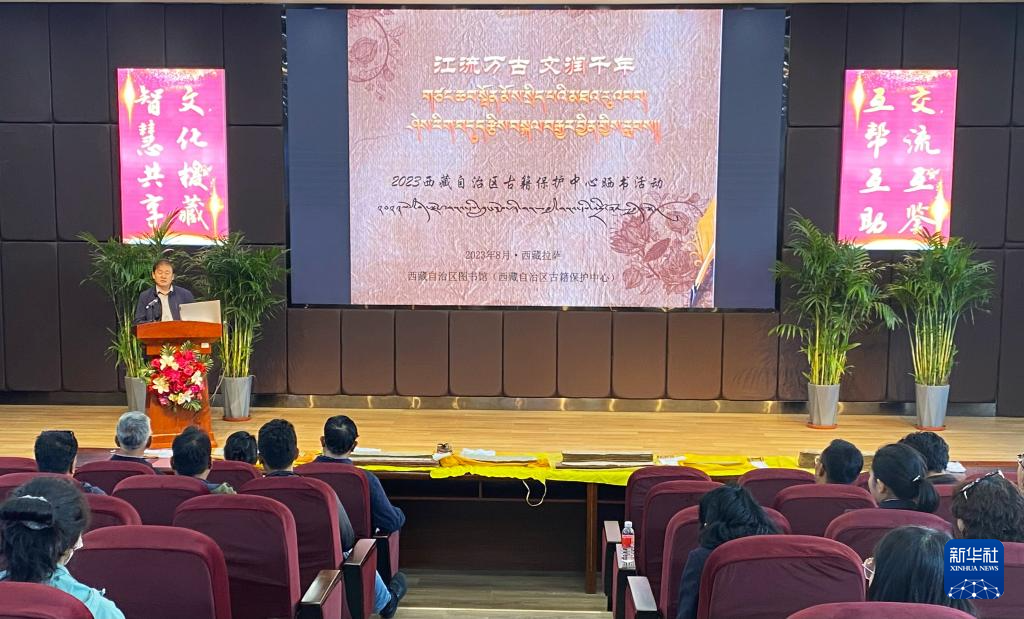 “江流萬古 文潤千年”——2023年西藏自治區(qū)古籍保護(hù)中心曬書活動(dòng)現(xiàn)場(chǎng)。新華社記者 春拉 攝