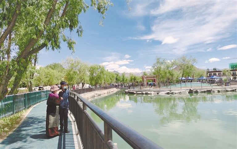 此外,為進一步給市民提供運動、健身、散步的場所,展示高原城市魅力,2017年以來,日喀則全市共計投入6.33億元,對年楚河沿線貢覺林卡、明珠湖、人民公園、黑龍江路1-5號公園,市區(qū)各出城口公園廣場進行重建,公園注重水陸生態(tài)保護,營造了良好的自然生態(tài)群落。