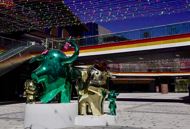 記者日前來到位于柳梧大橋西側(cè)的拉薩印第三代沉浸式主題商業(yè)街區(qū)看到,8棟風(fēng)格古樸又不失現(xiàn)代感、獨(dú)立又相互聯(lián)系的商業(yè)建筑群已落成,可愛俏皮、形象各異的街區(qū)創(chuàng)意IP雕塑分布于各顯眼處。星巴克服務(wù)、羅康藏宴、拉薩好物等品牌商家已開始試營業(yè),更多的商家正在入場進(jìn)行店鋪裝修。