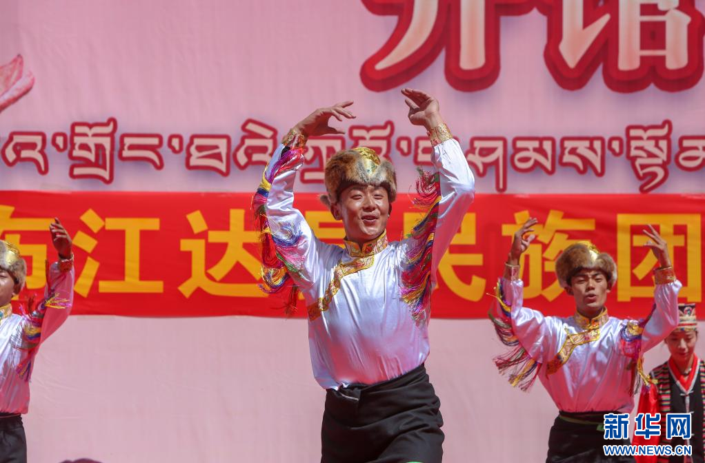 開館儀式上,演員正在表演具有當?shù)靥厣拿褡逦璧?。?月27日攝)新華社記者 邵澤東 攝