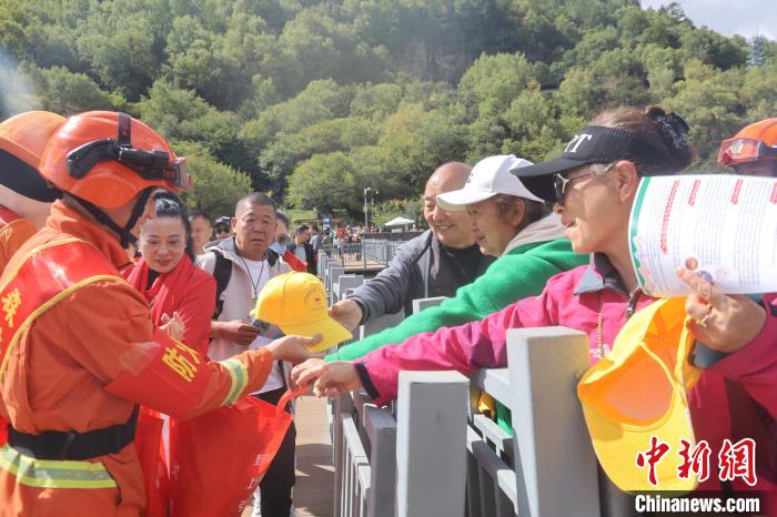 圖為消防員正在景區(qū)入口開展防火宣傳。西繞拉翁 攝