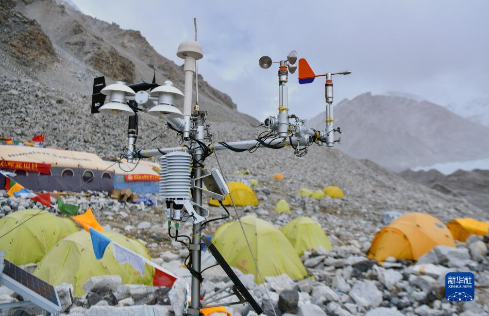位于海拔5700米卓奧友峰前進(jìn)營地的自動氣象站(9月29日攝)。新華社記者 晉美多吉 攝