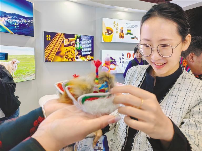 “這次畜產(chǎn)品展銷活動上,我們主要銷售天線帽工藝品、玉石、羊毛圍巾、羊毛毯等,產(chǎn)品價格比較實惠,前來咨詢購買的人也很多。展銷不到兩個小時,就賣了1000多元。”安多縣措那湖文化傳播有限責任公司負責人貢布多吉的臉上充滿了喜悅。