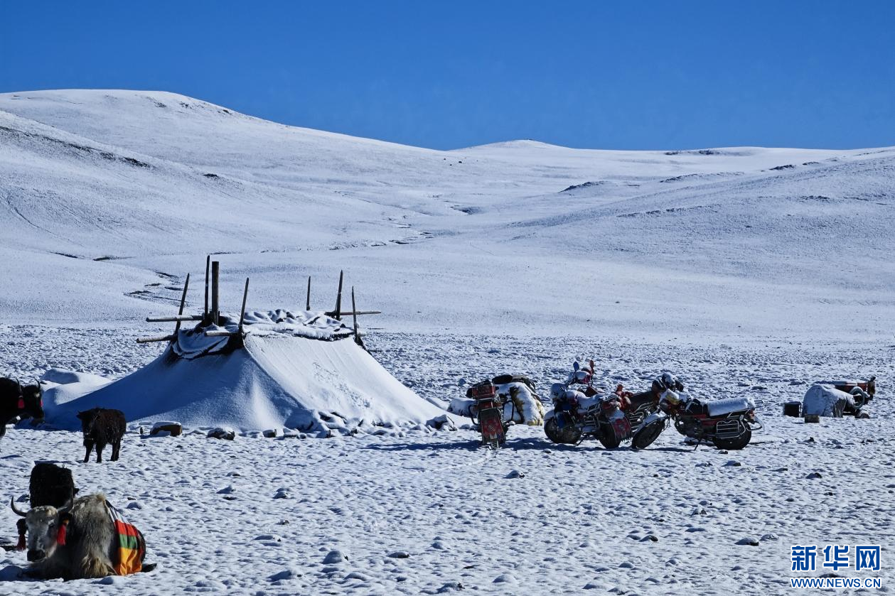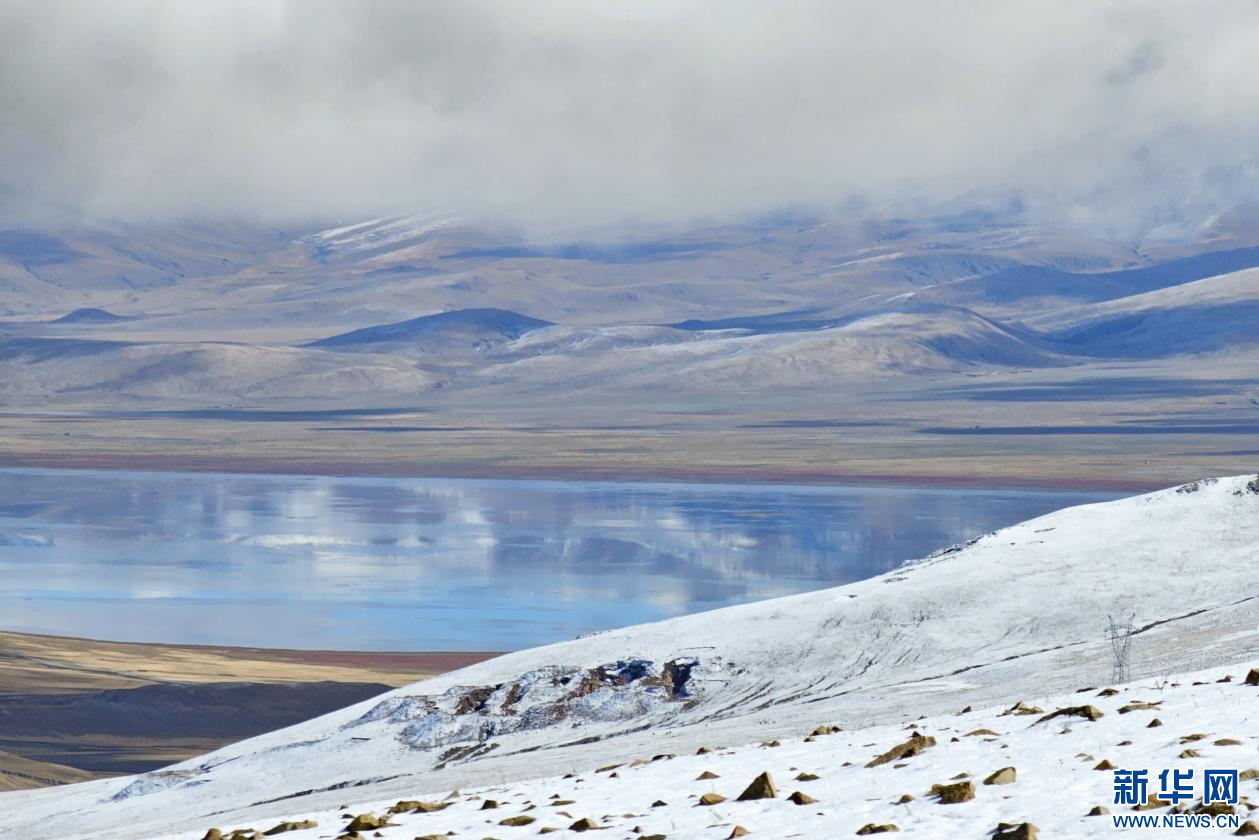 10月13日遠眺雪中哲古湖。新華網(wǎng) 柑丹鴦琦 攝