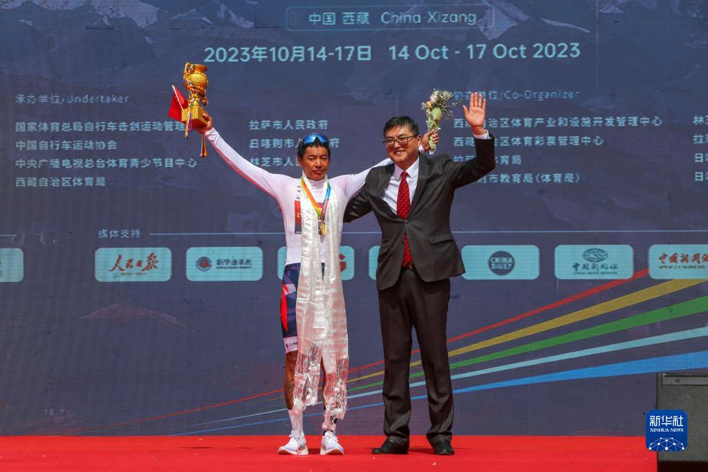10月17日,參賽選手沖過終點。新華社記者 普布次仁 攝