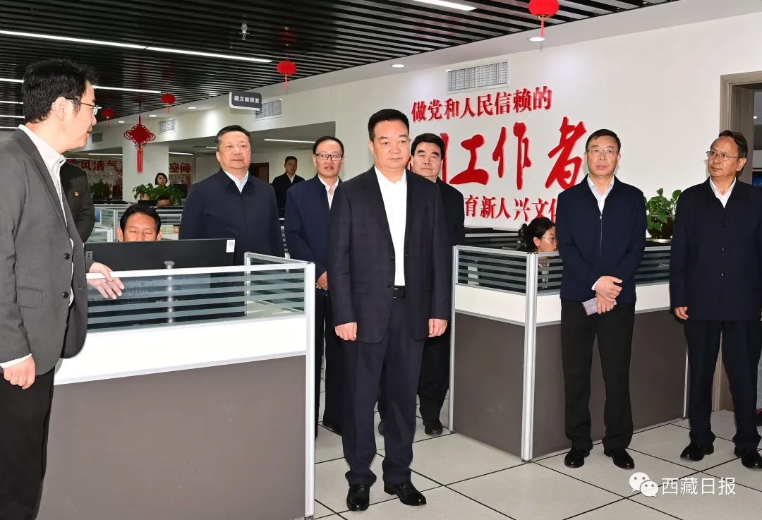 2023年9月25日,自治區(qū)黨委書(shū)記王君正來(lái)到西藏日?qǐng)?bào)社、西藏廣播電視臺(tái)調(diào)研。這是王君正在西藏日?qǐng)?bào)社詳細(xì)了解市場(chǎng)化運(yùn)營(yíng)、全媒體傳播體系建設(shè)、媒體深度融合發(fā)展等情況。記者 旦增西旦 攝