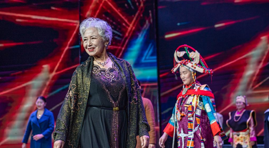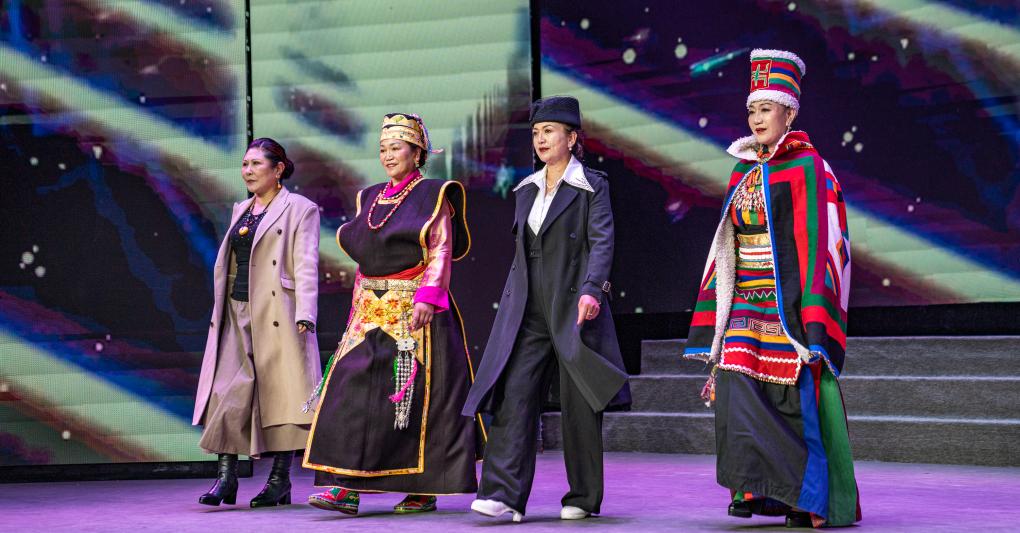 10月23日,“藏秀”模特隊(duì)的模特們在走秀。新華社發(fā)(丁增尼達(dá)攝)