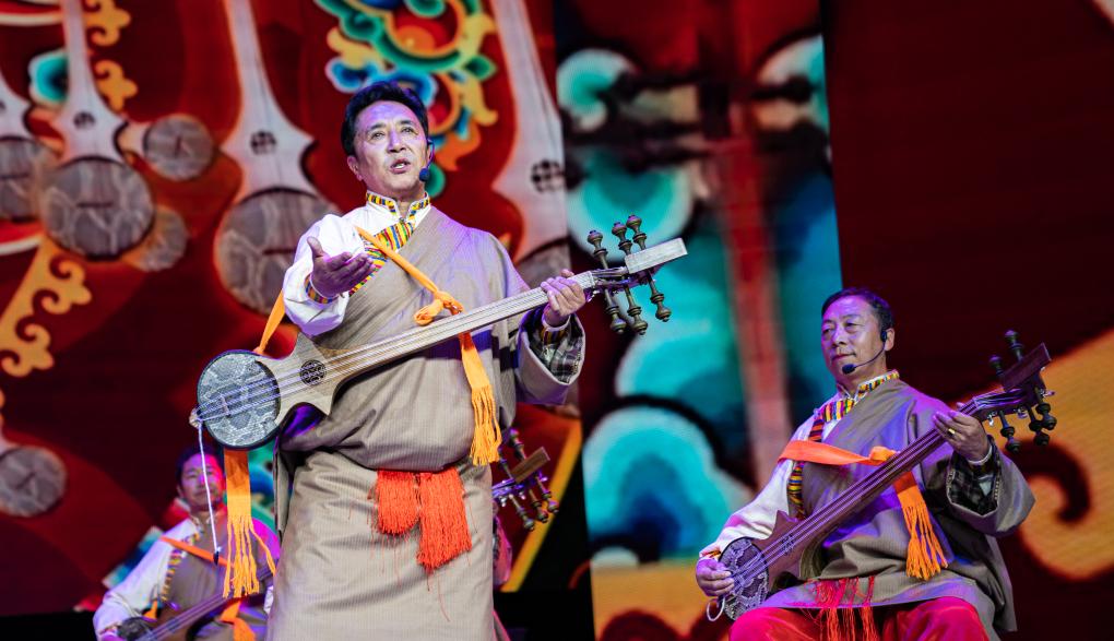 10月23日,老年文藝團(tuán)的演員們彈奏扎念琴。新華社發(fā)(丁增尼達(dá)攝)