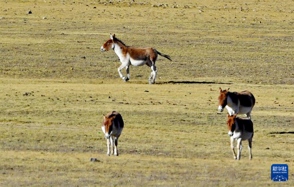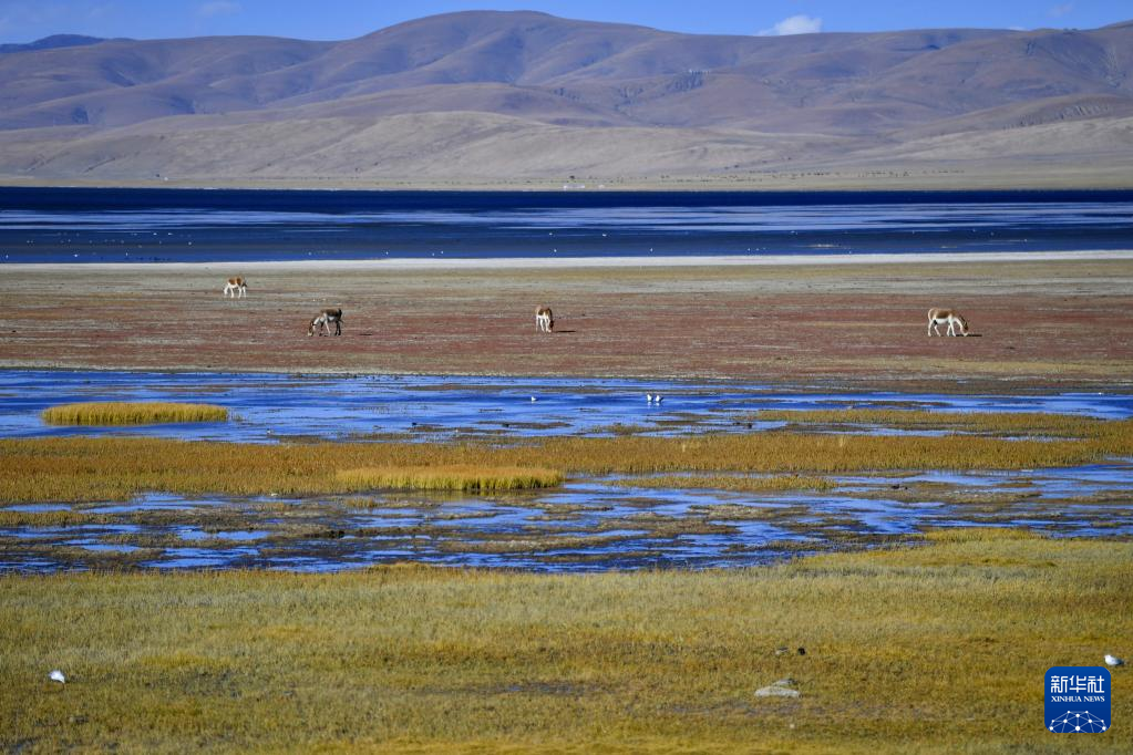 哲古湖畔草場上的藏野驢(10月25日攝)。新華社記者 張汝鋒 攝