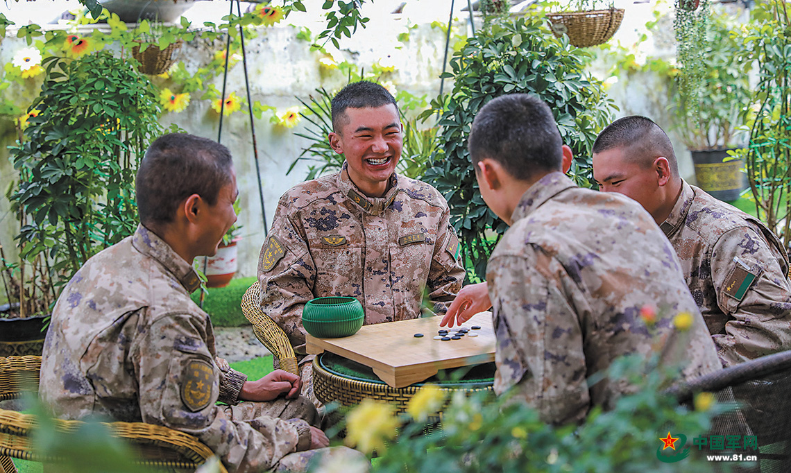 “陽(yáng)光大棚”內(nèi)綠植遍布,環(huán)境清新,成為官兵休閑娛樂的好去處。