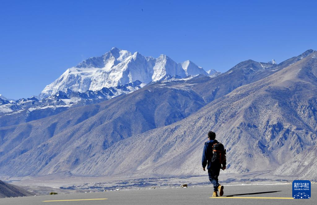 深秋,西藏日喀則市定日縣天高氣爽,游客前來觀賞世界最高峰——珠穆朗瑪峰。