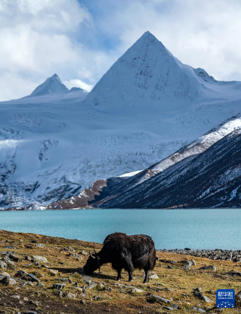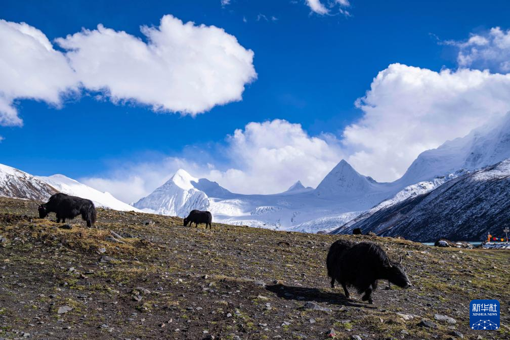 牦牛在薩普雪山腳下的草場(chǎng)上吃草(10月28日攝)。新華社記者 孫非 攝