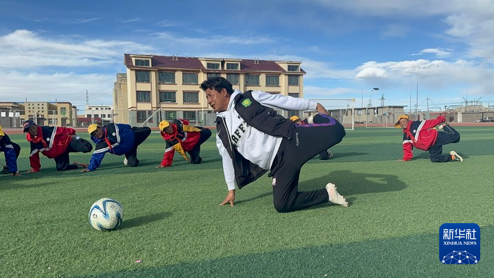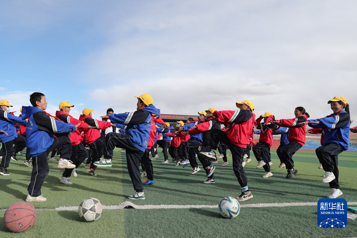 10月13日,在西藏那曲市班戈縣中石化小學(xué),學(xué)生在操場上做運(yùn)動(dòng)。新華社發(fā)(王敬 攝)