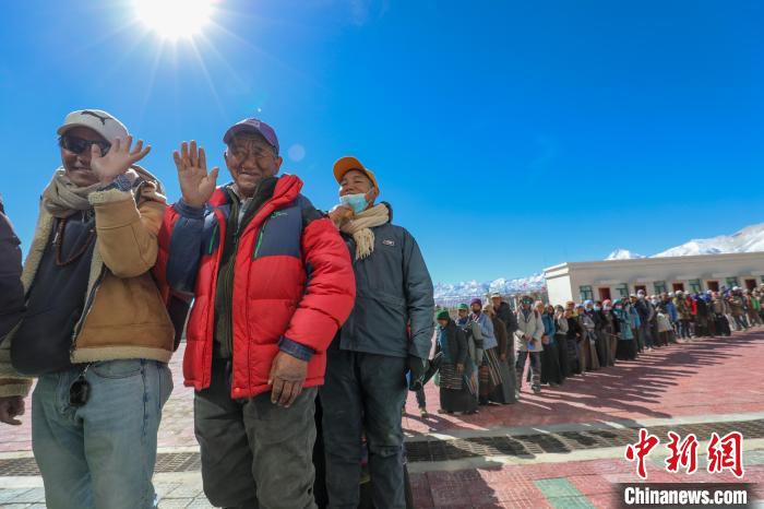 圖為里孜口岸尼泊爾旅客排隊(duì)等待入境。郭遠(yuǎn)敬 攝